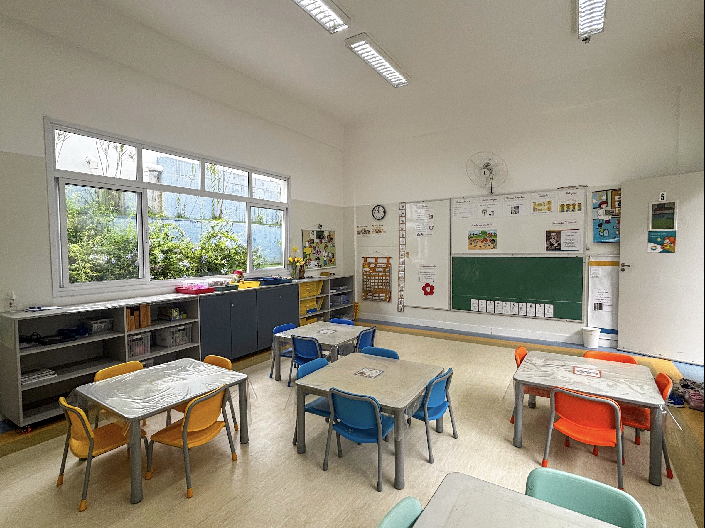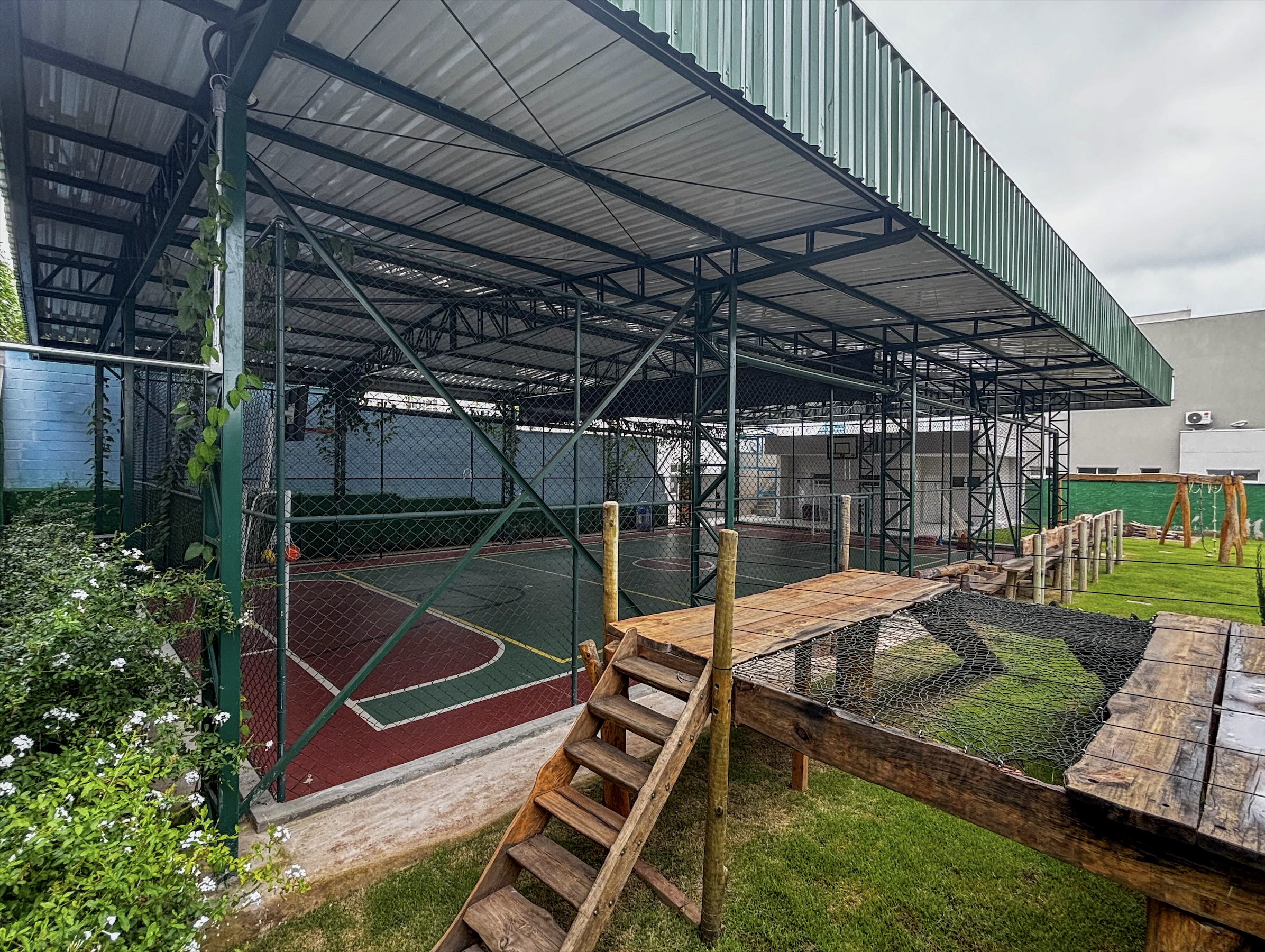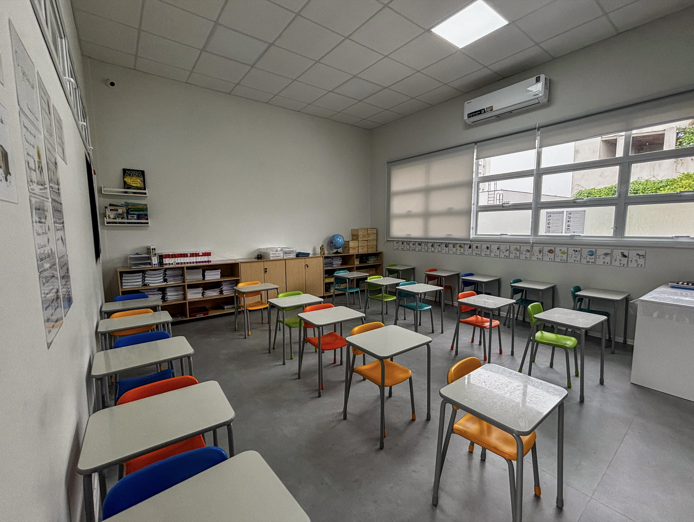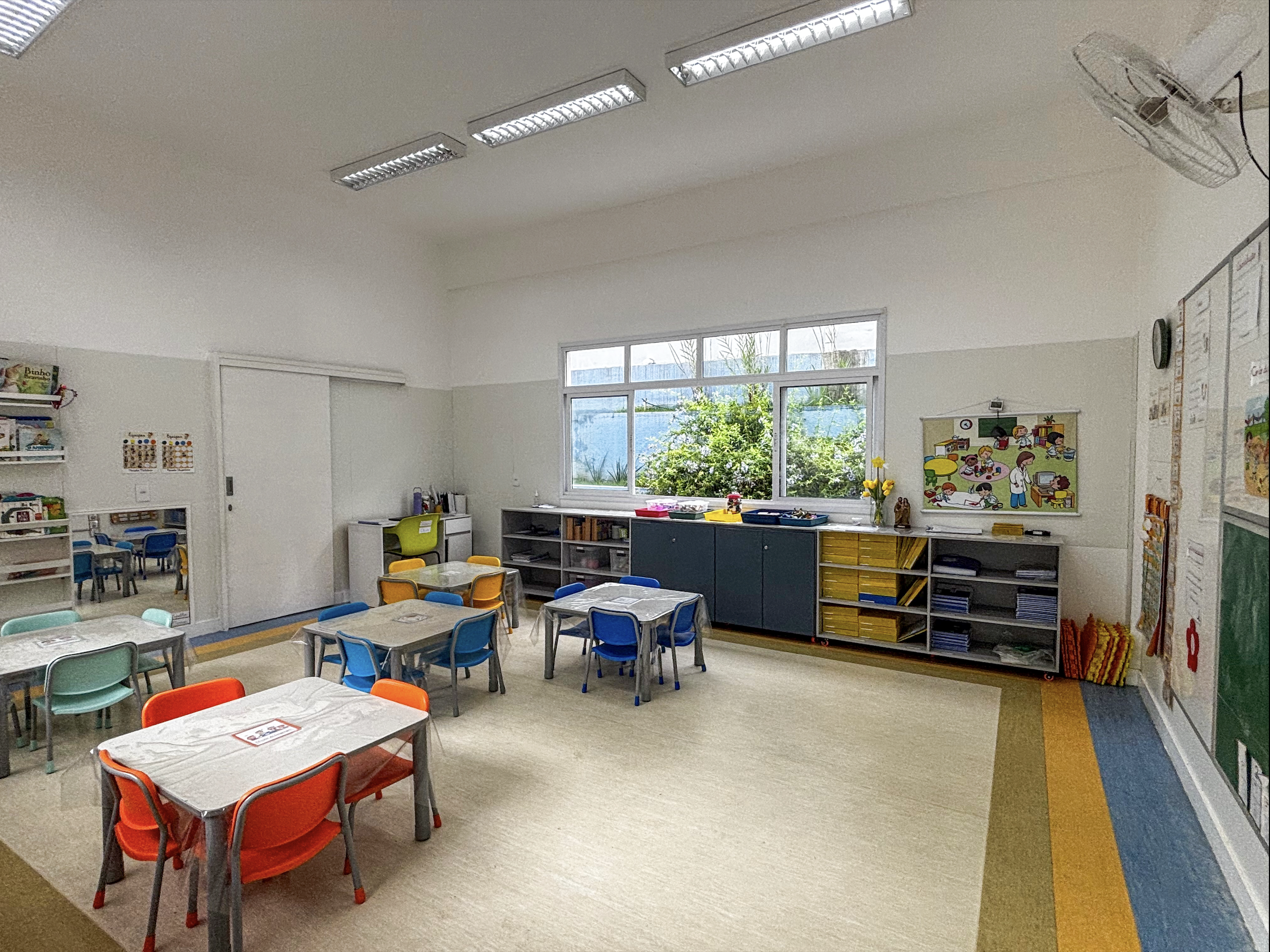 As salas de aula do infantil, sala de psicomotricidade, refeitório, parque e pátio de recreação estão no térreo, integrados através de uma varanda que percorre os espaços. Também possuem janelas para o lado externo e interno proporcionando iluminação e ventilação cruzada além de sanitários infantis exclusivos. O espaço do fundamental conta com uma quadra, Ecoparque e no andar superior, estão localizadas as salas de aula, sala de atividades extras, sala Maker e refeitório.
